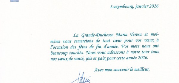 Royal response from Their Royal Highnesses Grand Duke Henri and Grand Duchess Maria Teresa of Luxembourg on the occasion of Christmas 2025 and the New