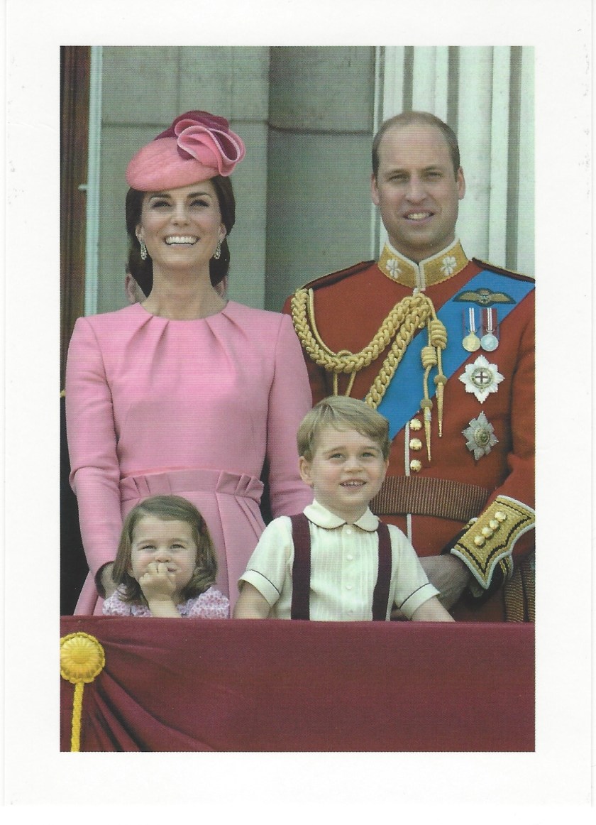 The reply is in the form of a photocard and features a picture of Their Royal Highness with their children Prince George and Princess Charlotte taken at Trooping the colour 2018 The Queens official birthday celebrations.