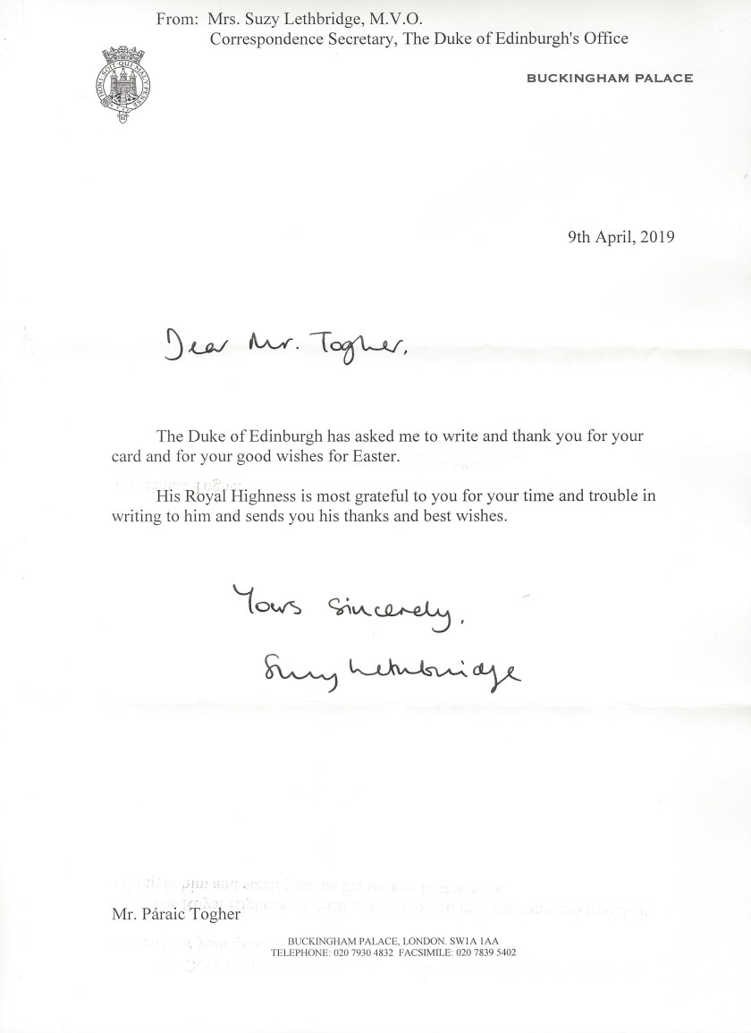 Royal response from His Royal Highness The Duke of Edinburgh on the occasion of Easter 2019.