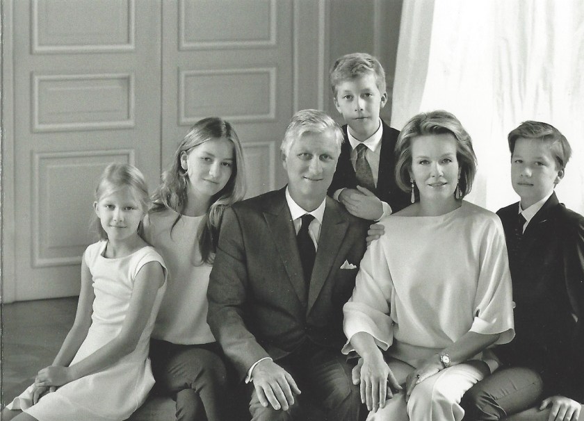 Royal response from their Majesties The King and Queen of The Belgians and their children on the occasion of Christmas 2017. The response features a message wishing a Merry Christmas and a Happy New Year in four different languages and is accompanied by a black and white photo of The Royal Family.