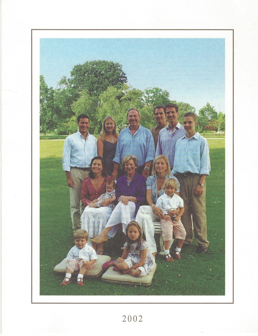 Seated: Arrietta Morales y de Grecia (Born 24th October 2002) in her mother’s arms; Princess Alexia; Anne-Marie, The Queen of Greece; Marie-Chantal, Crown Princess of Greece; Prince Constantine Alexios.
