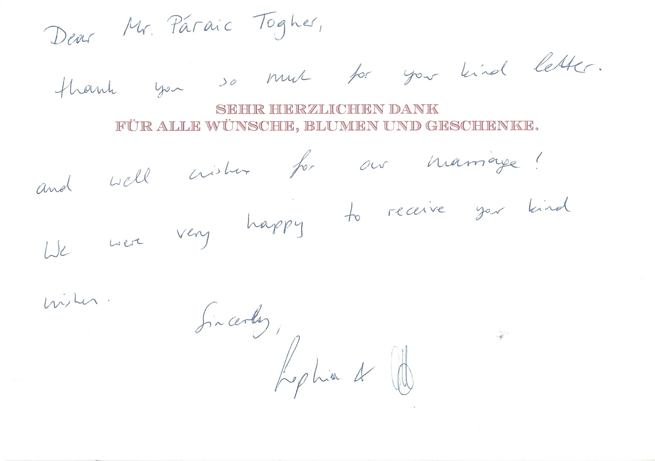 Otto and Sophie, The 6th Prince and Princess of Castell-Rüdenhausen Weddding Message 25th November 2019 royalresponses Leave a comment