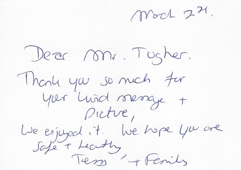 Royal response from His Royal Highness Prince Gabriel de Nassau on the occasion of his 14th birthday. His Royal Highness is eldest son of His Royal Highness Prince Louis of Luxembourg and Tessy Antony and was born 12th March 2006 in Switzerland. The reply is in the from of a card from Tessy thanking me for my card that i sent and wishing me health and safety in this uncertain times. The reply is hand-signed by Tessy.