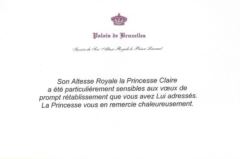 Her Royal Highness Princess Claire was particularly sensitive to the wishes for speedy recovery that you addressed to her.