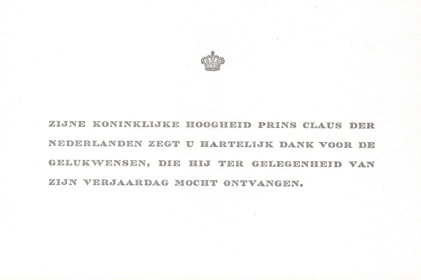 His Royal Highness Prince Claus of the Netherlands would like to thank you for the congratulations he received on the occasion of his birthday.
