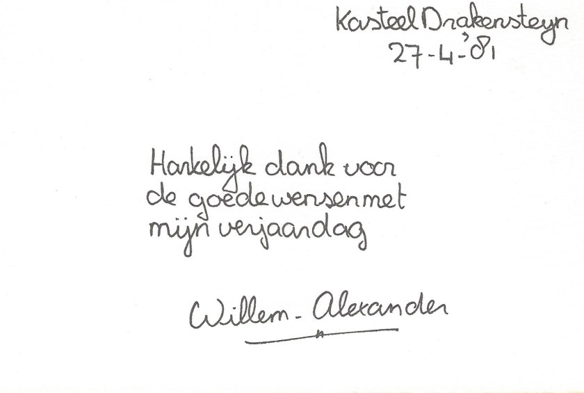 Royal response from His Royal Highness The Prince of Orange on the occasion of his 14th birthday.