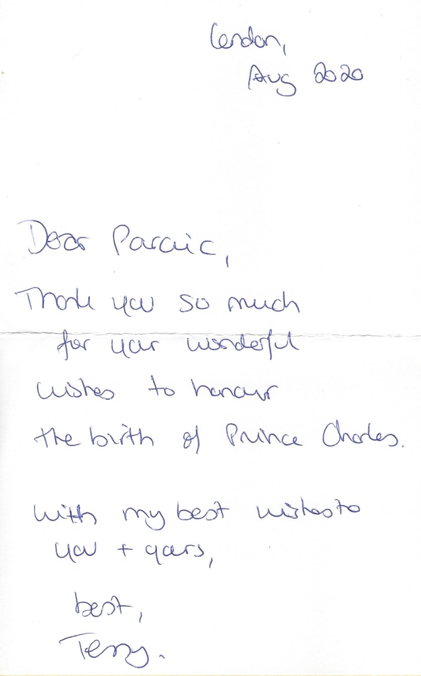 The reply is in the form of a letter from Tessy thanking me for my kind wishes.