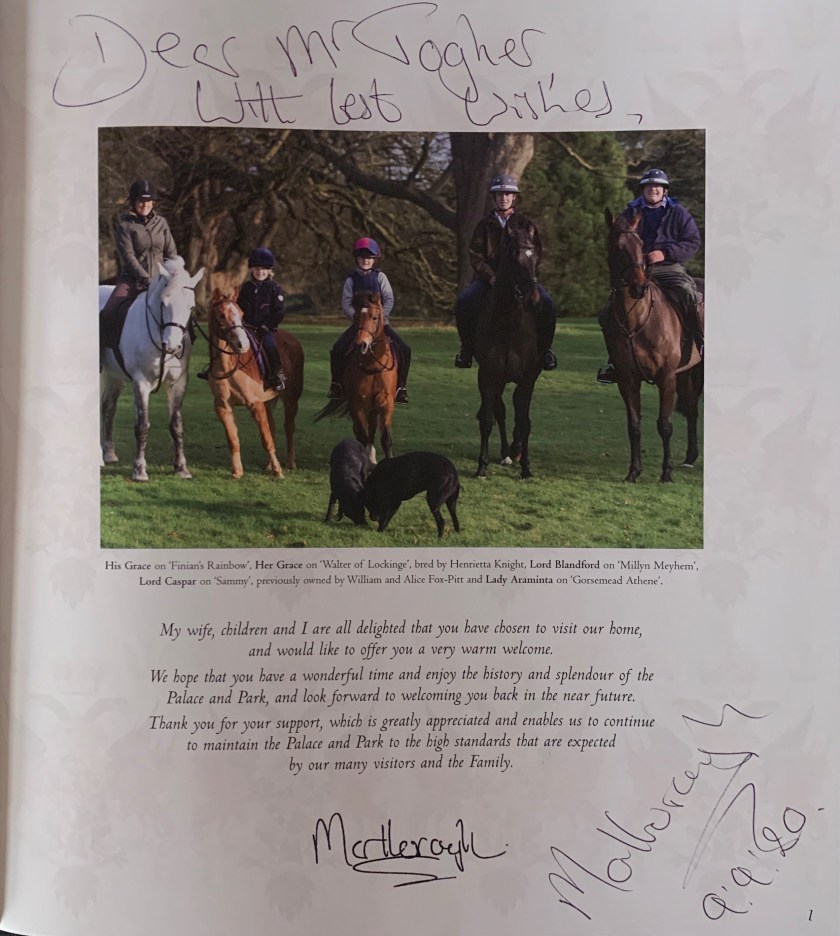 Response from His Grace The 12th Duke of Marlborough in response to a letter I sent him about Blenheim Palace been on BBC Songs of Praise and about the Corona Virus.