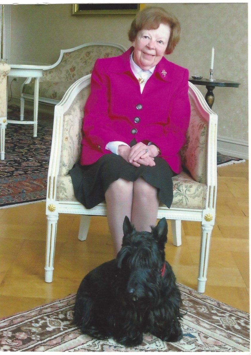 The reply is in the form of a card which on the front has a picture of Her Serene Highness with her dog a Scottish Terrier and inside is a message in German and it is hand signed by Her Serene Highness.