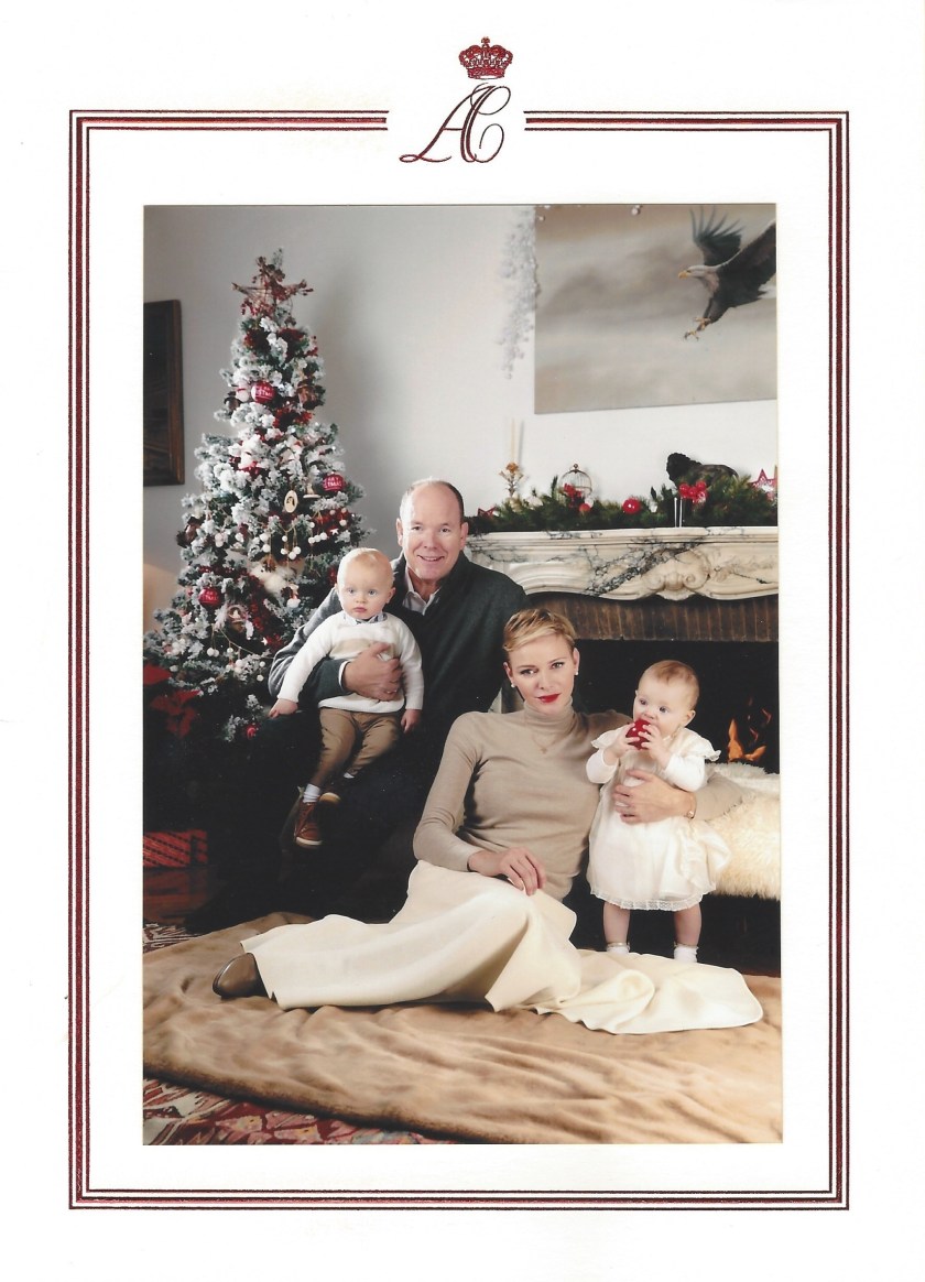The reply is in the form of a card which on the front has a picture of Their Serene Highnesses with their two children; Their Serene Highnesses Jacques, The Hereditary Prince of Monaco and Princess Gabriella, The Countess of Carladès who turn one year old just before Christmas and inside is a message in three languages; French, English and Monegasque.