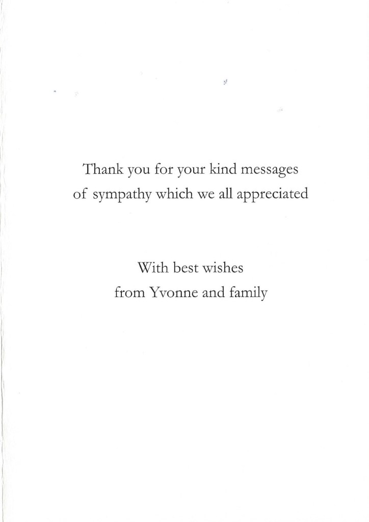 Response from Yvonne, The Dowager Baroness Ashbourne, Edward and Tracey, The 5th Baron and Baroness Ashbourne and family on the passing of Barry Gibson, The 4th Baron Ashbourne.