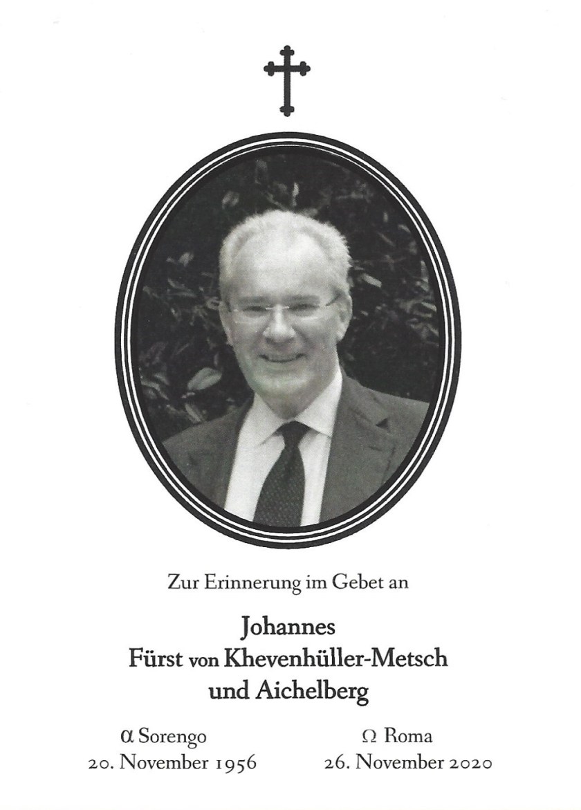 Royal response from The Khevenhüller-Metsch und Aichelberg family on the passing of His Serene Highness Johannes, The 10th Prince and Head of The Family.