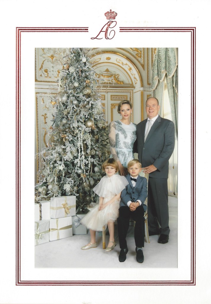 The response is in the form of a card with a picture on the front of the Royal Couple with their children , Jacques, The Hereditary Prince of Monaco and Princess Gabriella of Monaco and inside is a message in three languages wishing me a Merry Christmas and a Happy New Year.