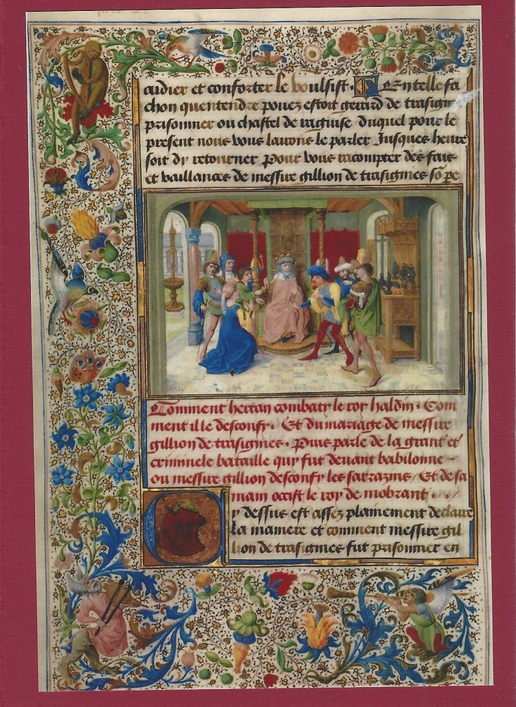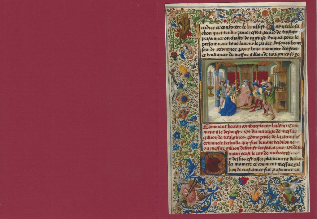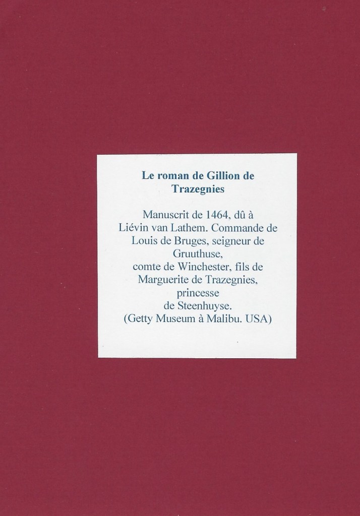 The reply is in the form of a card which on the front has a picture of Le roman de Gillion de Trazegnies and in side is a hand written message from The Marquis.