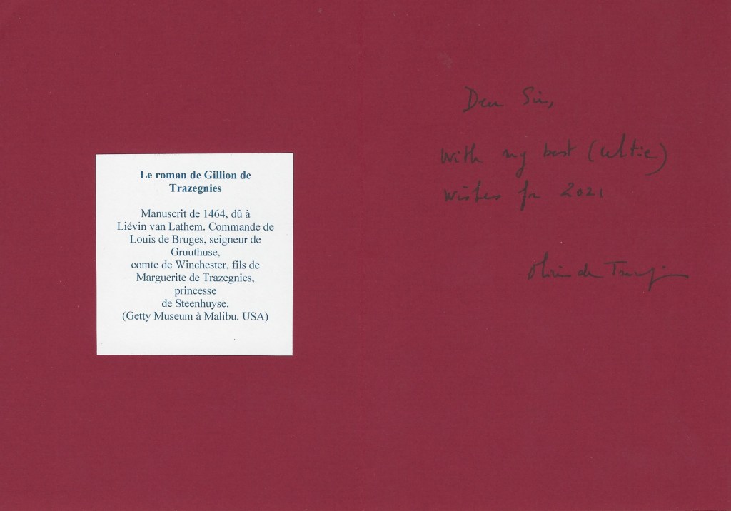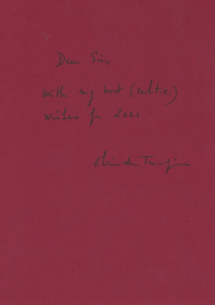 Response from Oliver, Marquis de Trazegnies on the occasion of Christmas 2020 and the New Year 2020.