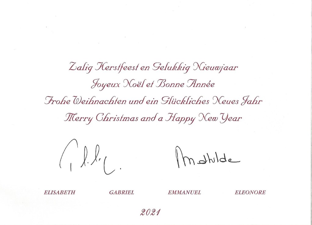 Royal response form Their Majesties The King and Queen of The Belgians, Her Royal Highness The Duchess of Brabant and Their Royal Highnesses Prince Gabriel, Prince Emmanuel and Princess Eleonore of Belgium on the occasion of Christmas 2020 and the New Year 2021.