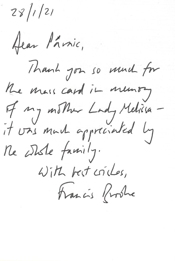 Response from Sir Francis Brooke, 4th Baronet and Mrs Emma Thompson on the passing of their mother The Lady Melissa Brooke.