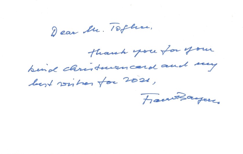 Inside the card is a hand written message in English thanking me for my kind greeting which is hand signed by His Royal Highness.