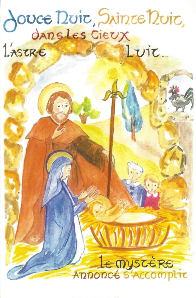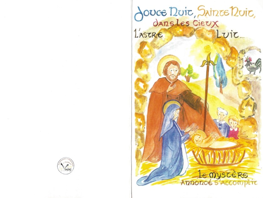 The rply i in the form of a Christmas card which on the front which has a picture of a navitity scene, inside is a handwitten mesage in french from The Countess and has a family portrait on the opposite side.