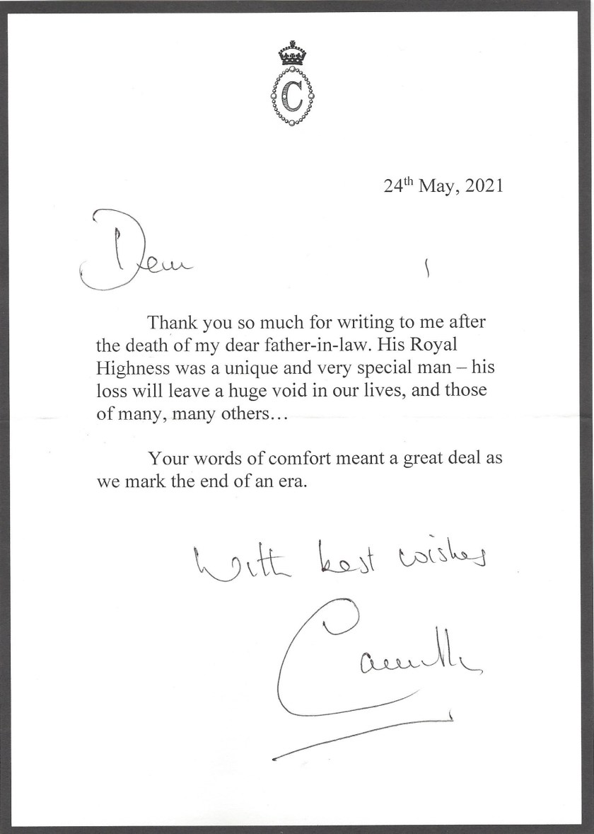 Royal response from Their Royal Highnesses The Duchess of Cornwall on the passing of her father in law His Royal Highnesses The Prince Philip, The Duke of Edinburgh.