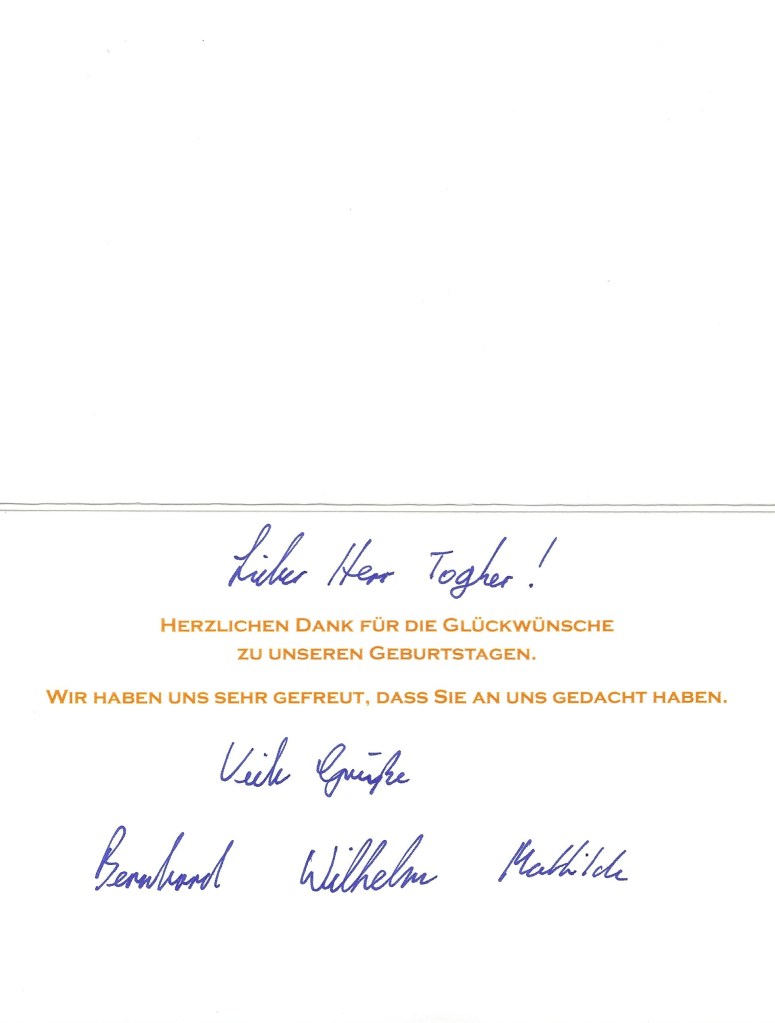Royal response from Their Serene Highnesses The Hereditary Prince, Prince Wilhelm and Princess Mathilde de Lippe on the occasion of their 26th, 22nd and 18th birthdays respectfully.