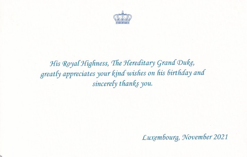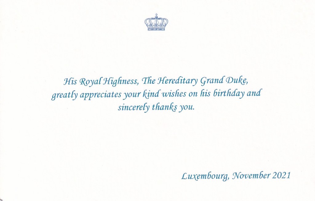 Royal response from His Royal Highness The Hereditary Grand Duke of Luxembourg on the occasion of his 40th birthday.