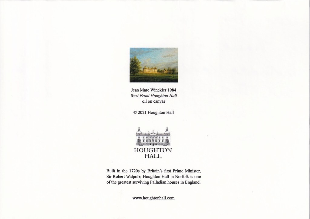 The reply is in the form of a card which has a picture of Houghton Hall on the front and on the inside is a hand written note and it is signed by Lady Cholmondeley.