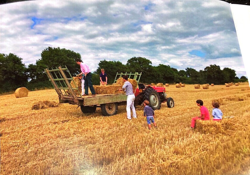 The reply is in the form of card which has a picture of the family (Alix, Xavier, Armel, Benedikt, Alexandra, Marie-Anasthasie and Joseph) in a field doing some work and inside is a message in English, French and German and is hand signed by the Countess.