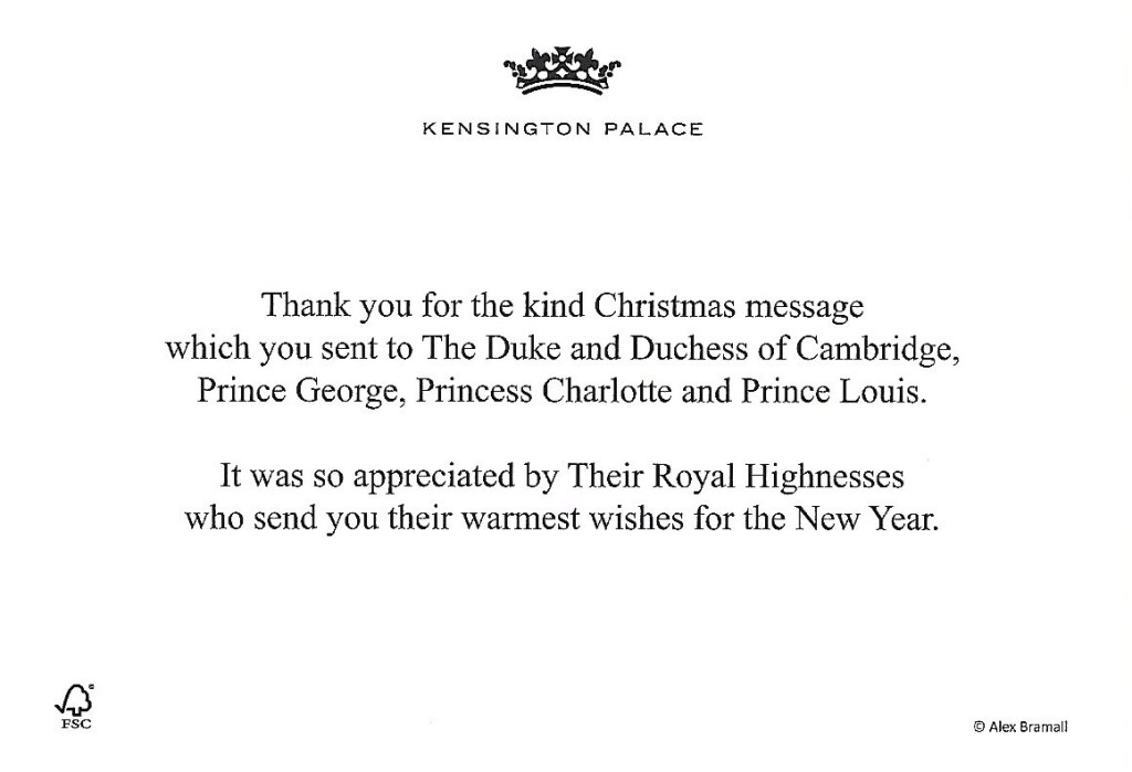 Royal response from Their Royal Highnesses The Duke and Duchess of Cambridge on the occasion of Christmas 2021 and the New Year 2022.