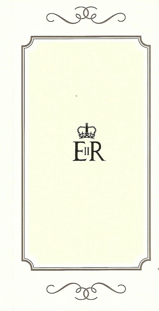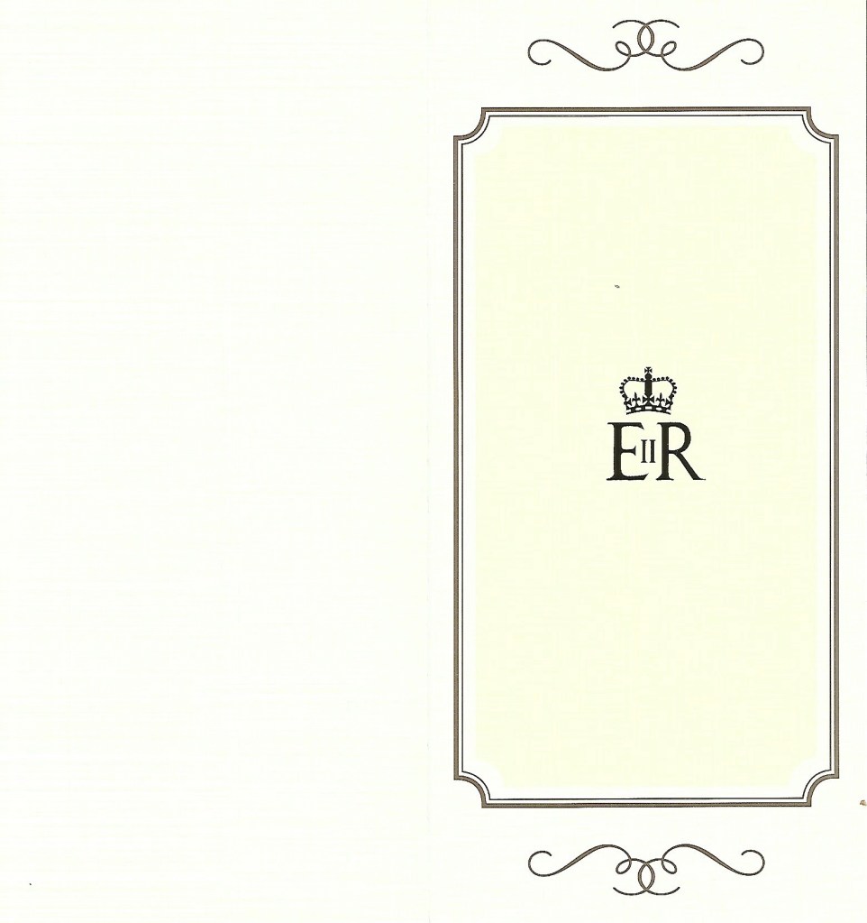The reply is in the form of a folder card which on the front has Her Majesty’s Cypher, inside is a picture of Her Majesty and opposite is a message from The Queen.