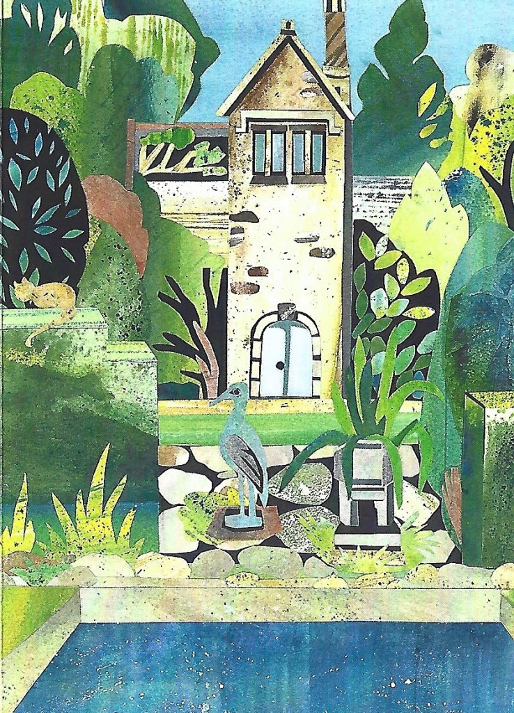The reply is in the form of a card which on the front is a printed image of a painting by Marion Taylor of the reflecting pool in front of Mapperton Garden Cottage. Inside is a message thanking me for my support and it is signed by Lord and Lady Hinchingbrooke.