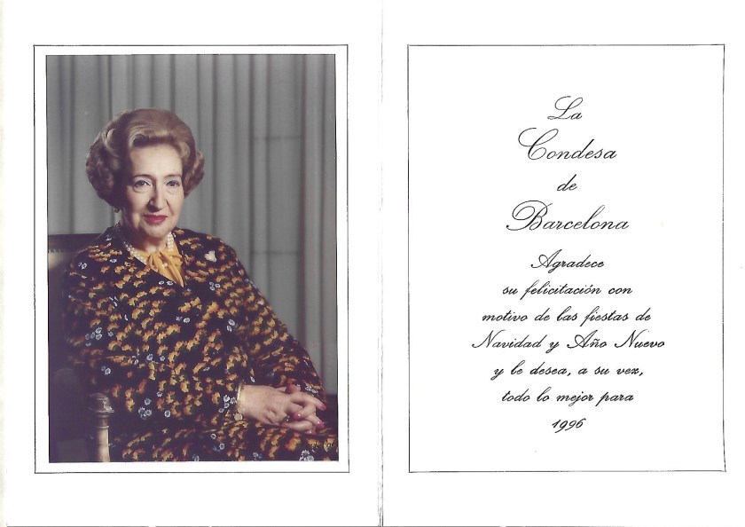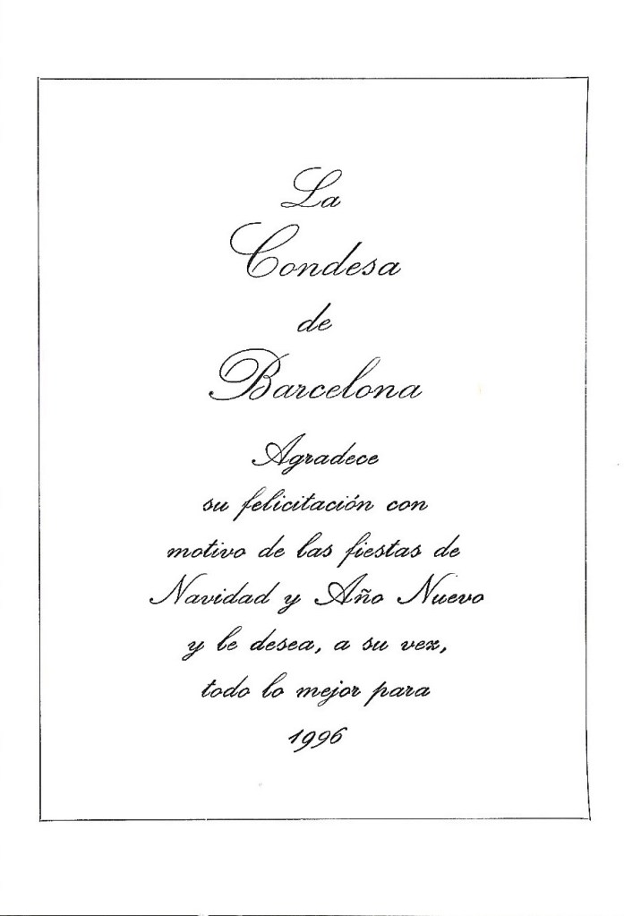 Royal response from Her Royal Highness The Countess of Barcelona on the occasion of Christmas 1995 and the New Year 1996.