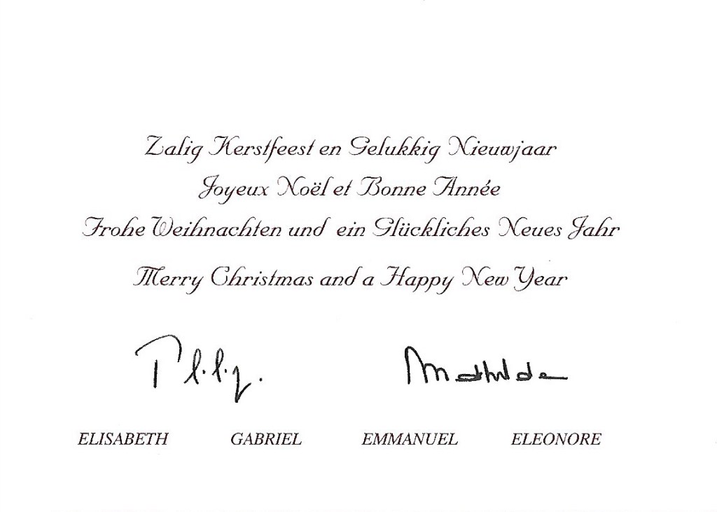 Royal response form Their Majesties The King and Queen of The Belgians, Her Royal Highness The Duchess of Brabant and Their Royal Highnesses Prince Gabriel, Prince Emmanuel and Princess Eleonore of Belgium on the occasion of Christmas 2014 and the New Year 2015.