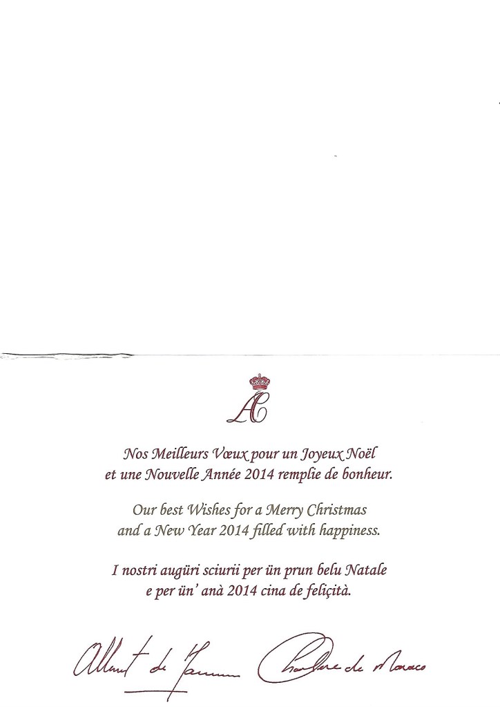 Royal response from Their Serene Highnesses The Prince and Princess of Monaco on the occasion of Christmas 2013 and the New Year 2014.
