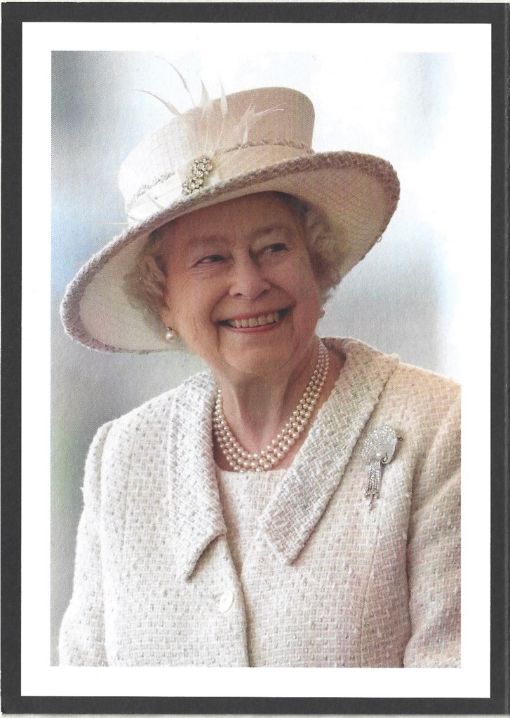 The reply is in the form of a card which on the front has Their Royal Highnesses individual Royal Cyphers, inside is a picture of Her Majesty, taken by Paul Hackett. Opposite is a message from Their Royal Highnesses The Prince and Princess of Wales thanking me for my message of condolences.