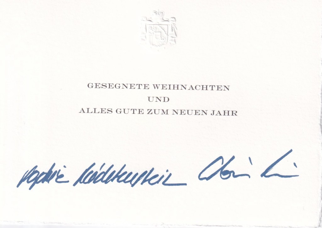 Christmas response from His Serene Highness The Hereditary Prince of Liechtenstein and Her Royal Highness The Hereditary Princess of Liechtenstein on the occasion of Christmas 2022 and the New Year 2023.