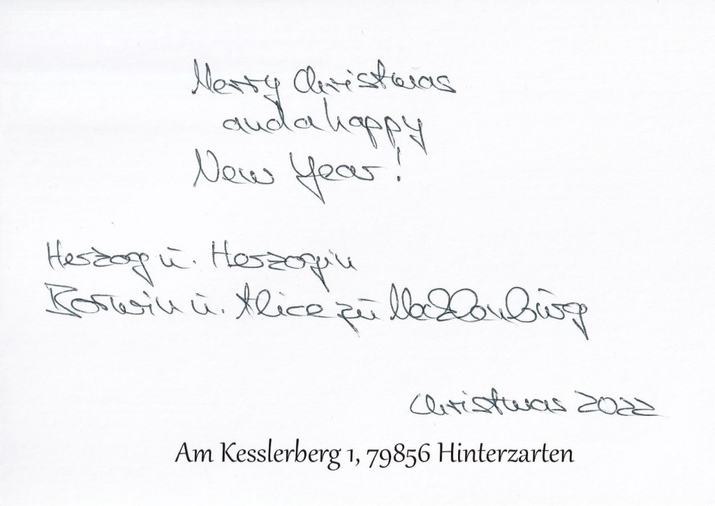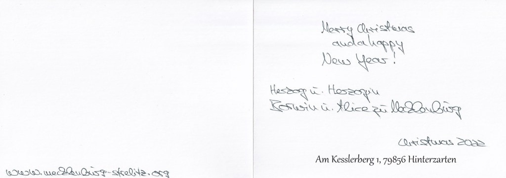 Royal response from Their Highnesses The Duke and Duchess of Mecklenburg on the occasion of Christmas 2022 and the New Year 2023.