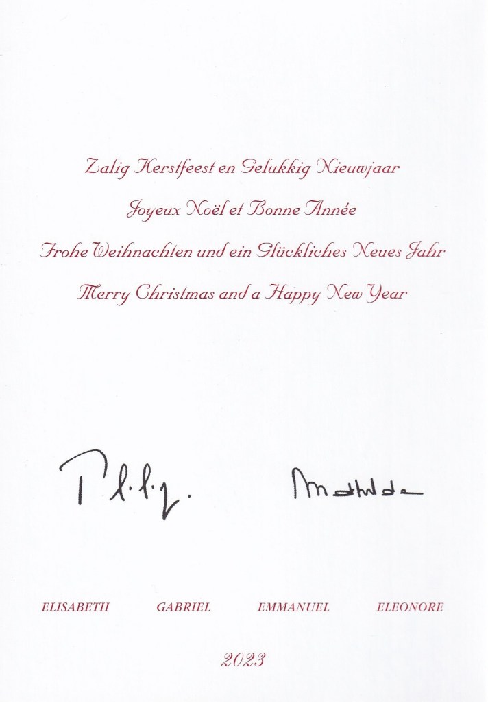 Royal response form Their Majesties The King and Queen of The Belgians, Her Royal Highness The Duchess of Brabant and Their Royal Highnesses Prince Gabriel, Prince Emmanuel and Princess Eleonore of Belgium on the occasion of Christmas 2022 and the New Year 2023.