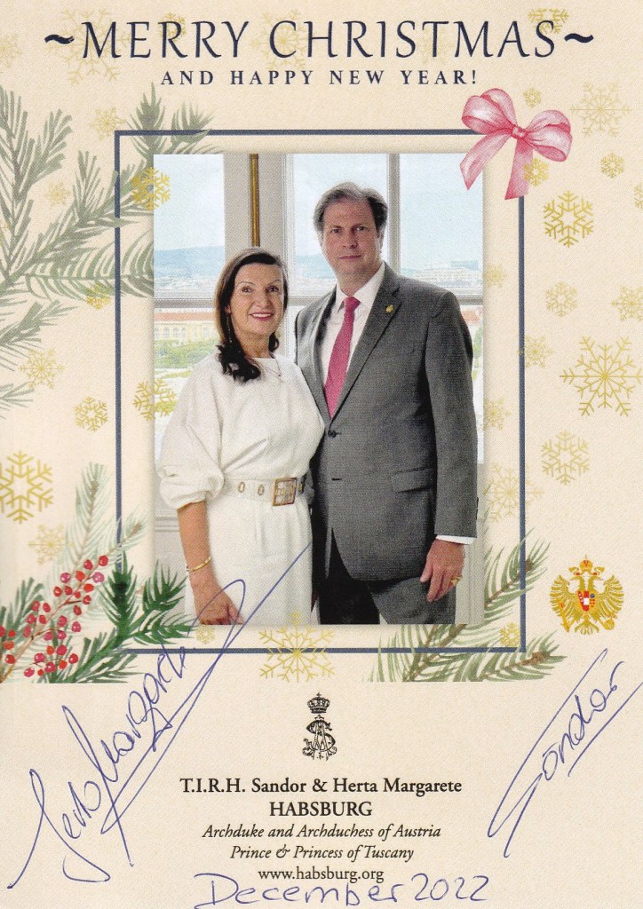 Royal Response from Their Imperial and Royal Highnesses Archduke Sandor and Archduchess Herta Margarete of Austria, Prince and Princess of Tuscany, Royal Prince and Princess of Hungry, Croatia and Bohemia on the occasion of Christmas 2022 and The New Year 2023.