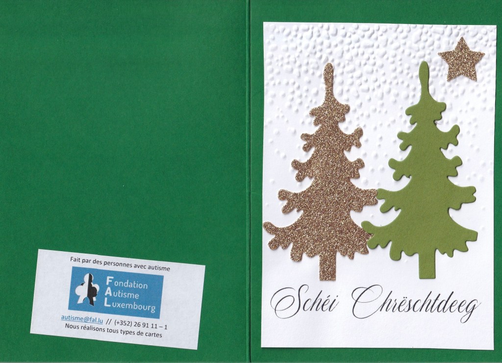 The response is in the form of a card in English. The card is in support of Luxembourg Autism Society. Also includes is a family picture.