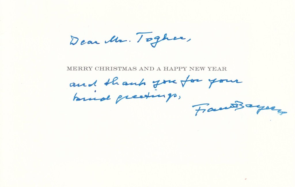 Inside the card is a hand written message in English thanking me for my kind greeting which is hand signed by His Royal Highness.