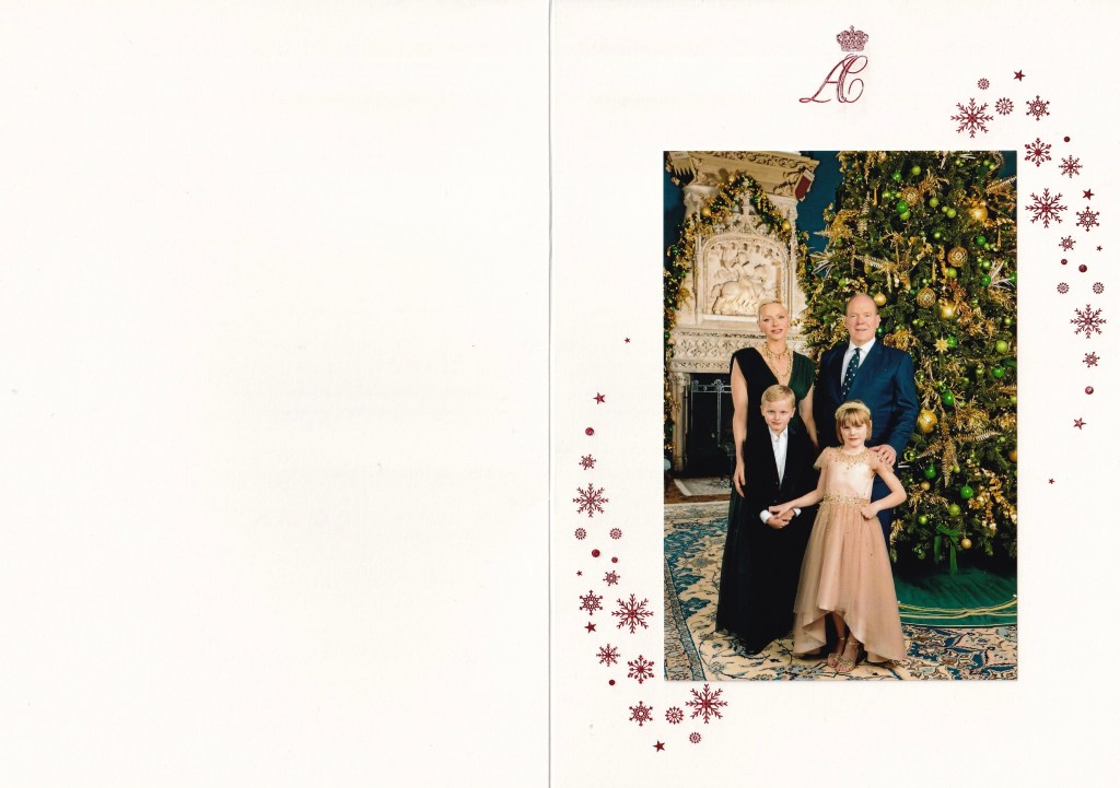 The response is in the form of a card with a picture on the front of the Royal Couple with their children , Jacques, The Hereditary Prince of Monaco and Princess Gabriella of Monaco and inside is a message in three languages wishing me a Merry Christmas and a Happy New Year.