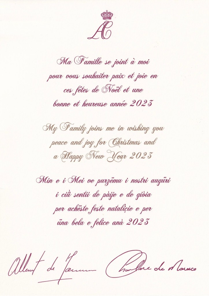 Royal response from Their Serene Highnesses The Prince and Princess of Monaco on the occasion of Christmas 2022 and the New Year 2023