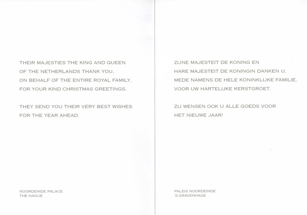 Royal response from Their Majesties The King and Queen of the Netherlands on the occasion of Christmas 2021 and the New Year 2022.
