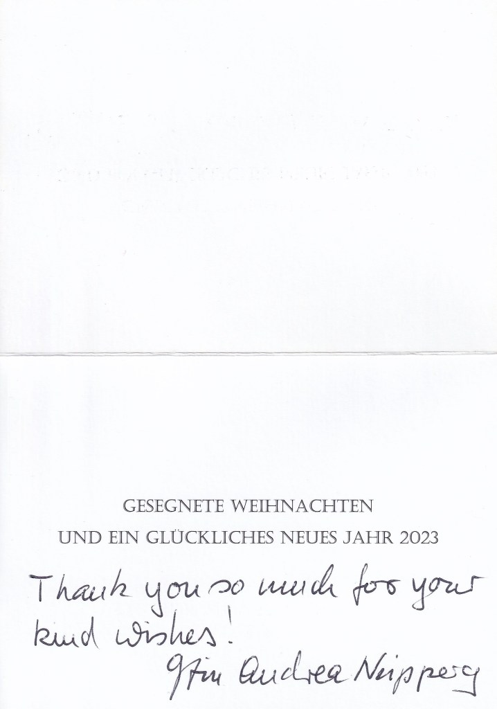 Royal response from the Graf and Gräfin von Neipperg on the occasion of Christmas 2022 and the New Year 2023.