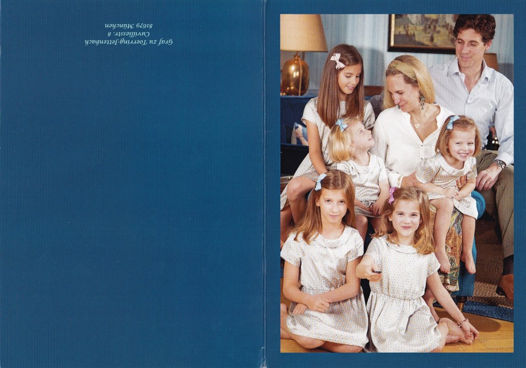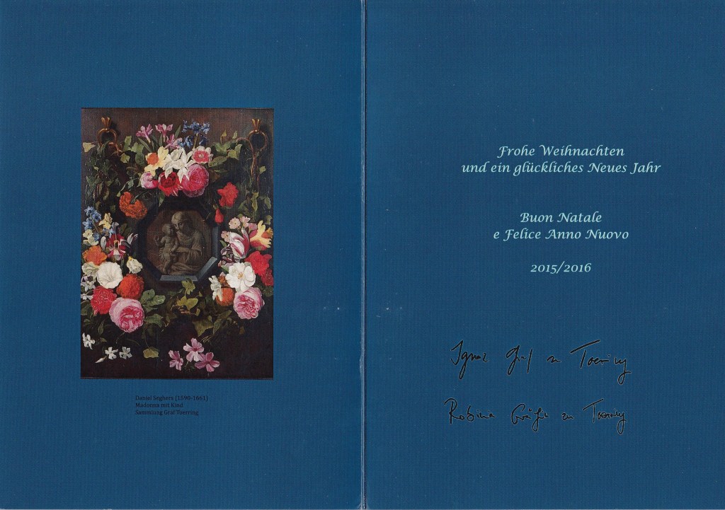 Royal response from Graf Ignaz and Gräfin Robina zu Toerring-Jettenbach on the occasion of Christmas 2015 and the New Year 2016.