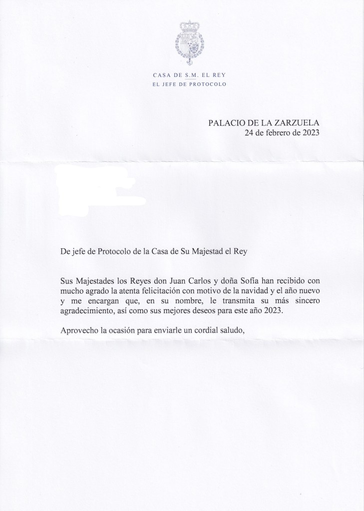 Royal response from Their Majesties King Juan Carlos I and Queen Sofia of Spain on the occasion of Christmas 2022 and the New Year 2023.