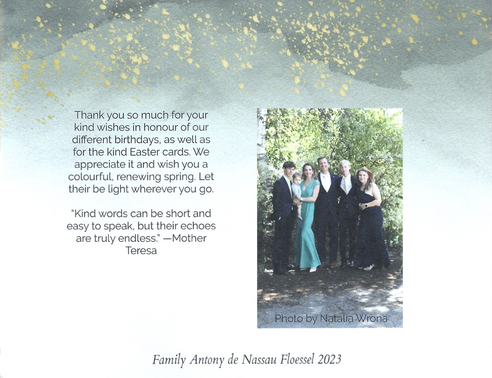 Response from Tessy Antony-de Nassau and Frank Floessel and family.