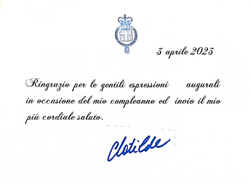The reply is in the form of a card in Italian thanking me for my birthday wishes.