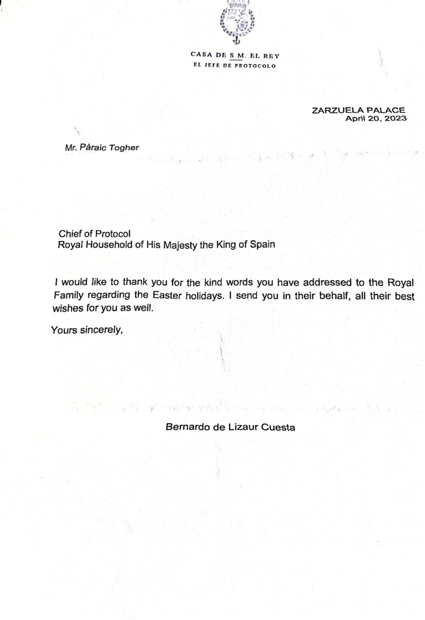 Royal response from Their Majesties The King and Queen of Spain on the occasion of Easter 2023.